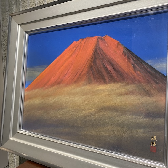 福王寺法林の作品を買取いたしました。画面いっぱいに広がる富士山は、真紅に染まりながらも、どこか静けさをたたえていて、早朝の凛とした空気が伝わってくるようです。