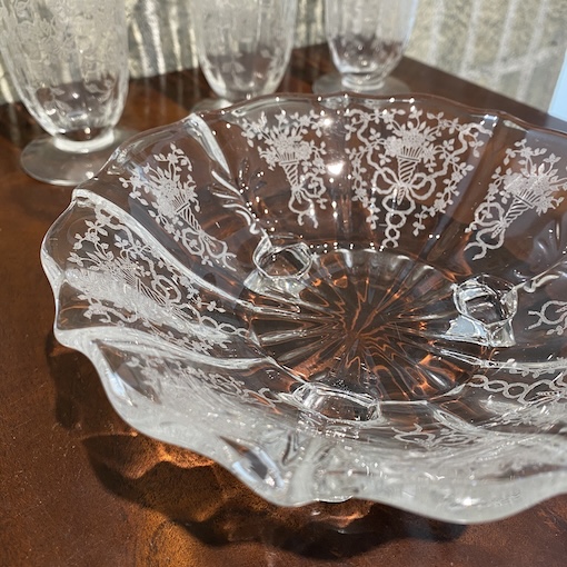先日は、フォストリアのガラス製品をお譲りいただきました。お客様は長年にわたり大切にコレクションを重ねてこられ、その中からグラスやボウルなど一部をお譲りいただきました。