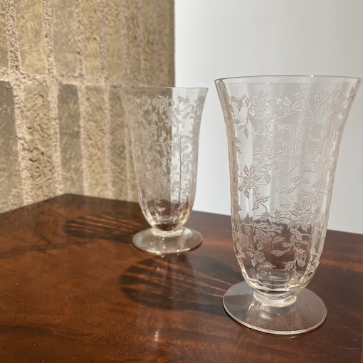 1887年にアメリカ・オハイオ州で創業したフォストリアは、のちにウェストバージニア州マウンズビルに拠点を移し、1920年代にはアメリカ最大の手作りガラスメーカーへと成長しました。特に1915年に誕生した「アメリカン」パターンは世界中で人気を博し、食卓を華やかに彩りました。